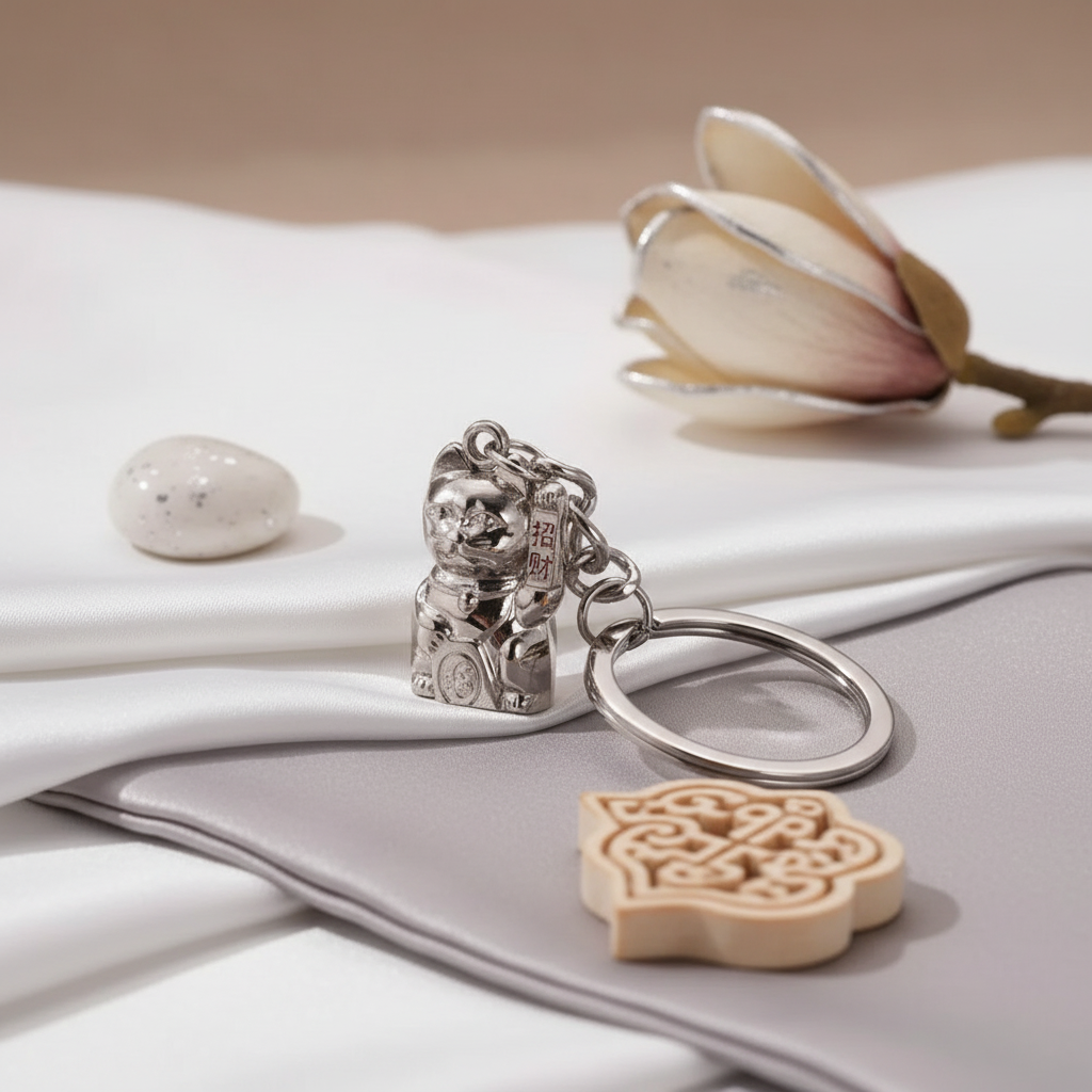 Glückskatzen-Schlüsselanhänger – Maneki Neko 3D