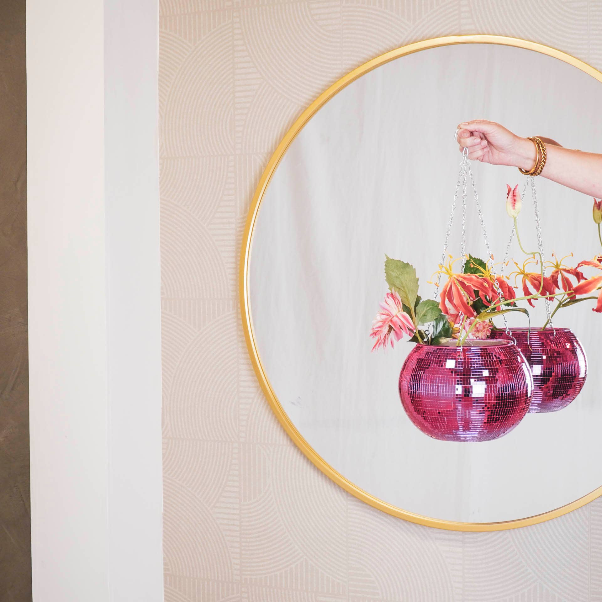 Styling-Tipp: Diese hängende Disco-Glitzervase braucht nicht viel: einfach aufhängen.