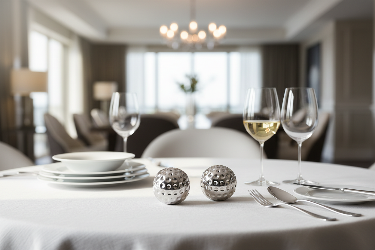 Elegante Golfbälle in Salz- und Pfefferstreuerform. Dieses hochwertige Tischzubehör wird von allen Golfbegeisterten geschätzt. Hole-in-one!
