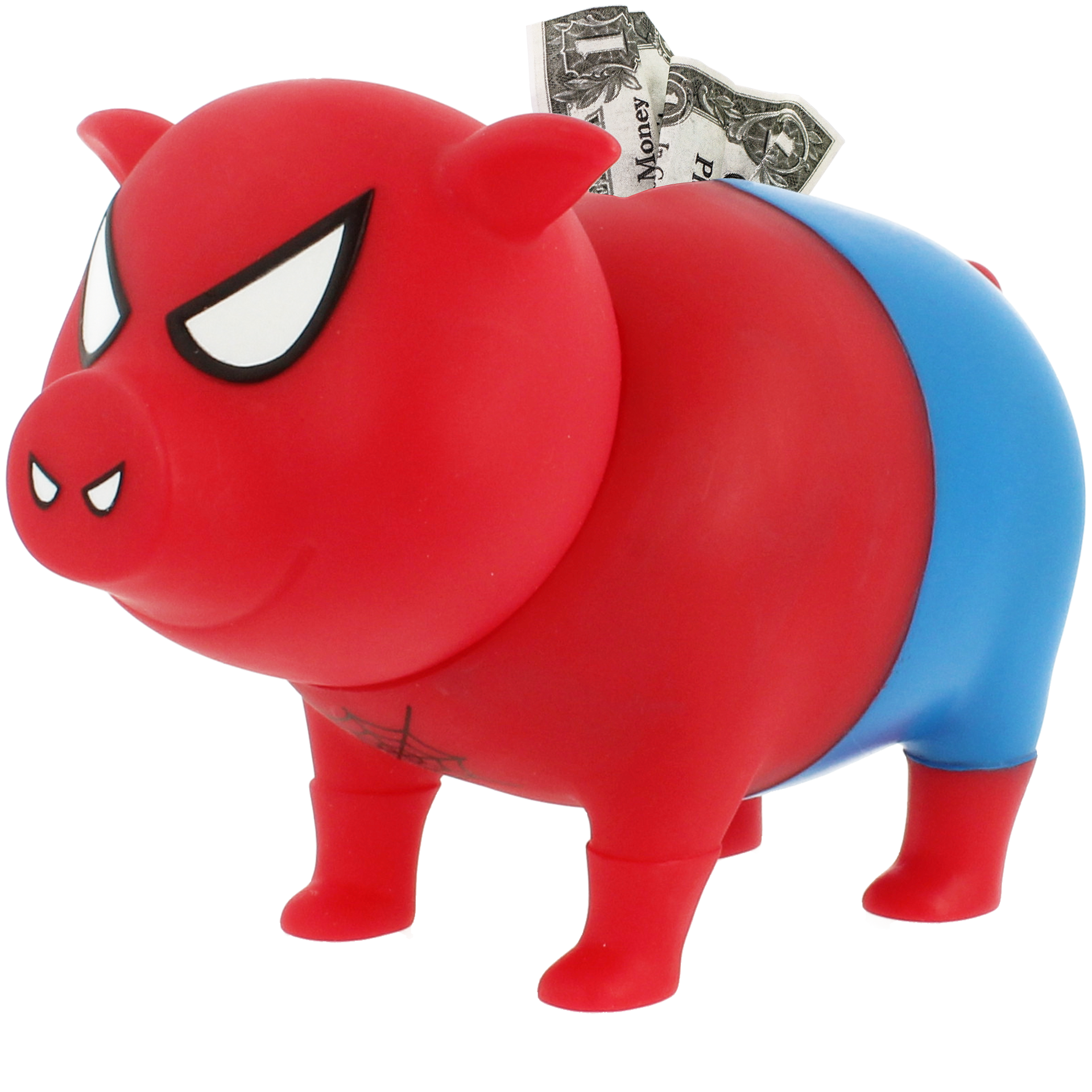 Everyone who wants to be a hero deserves a unique reward for trying. This Biggy Spider-Pig becomes heroic with its spider-superhero outfit and its ability to collect money as a piggy bank. The Spider-Pig is therefore the perfect lucky charm for daring actions and little heroes who love walking on air.