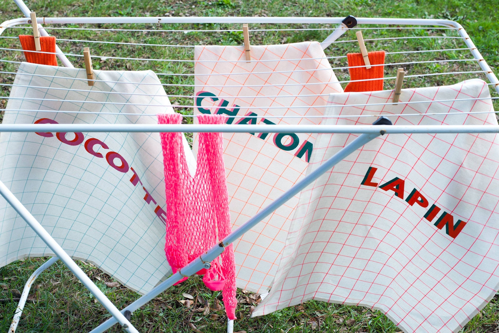 These tea towels beautifully blend retro and modern spirit thanks to the large woven squares and tender, graphic messages.