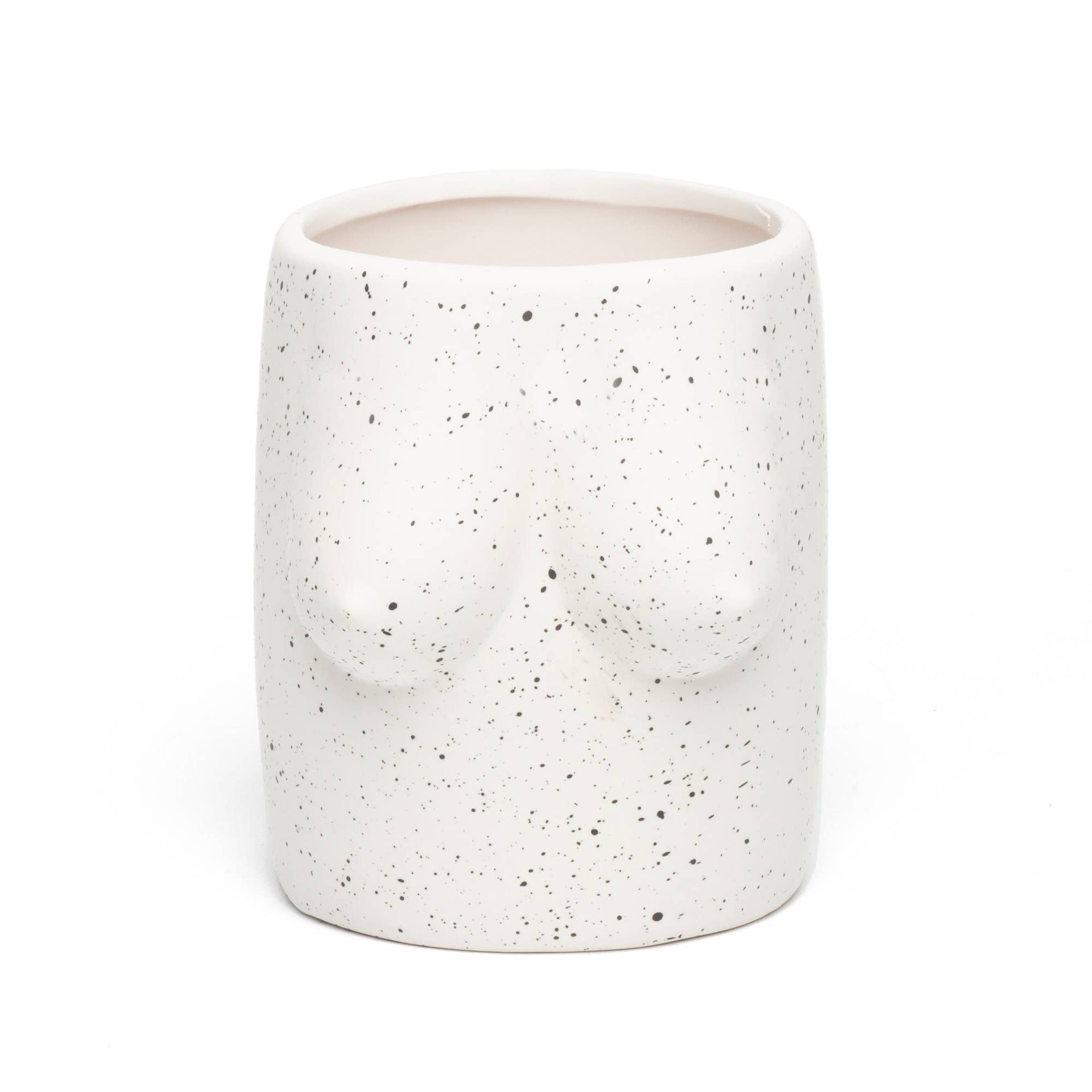 This container, featuring an original design of natural female breasts in white, belongs to the #Bodyparts trend. It's a very versatile product, as it can be used as a vase, a pen holder, or simply as a decorative element. Available in three colors: white, black, and terracotta. Hand-painted with love.