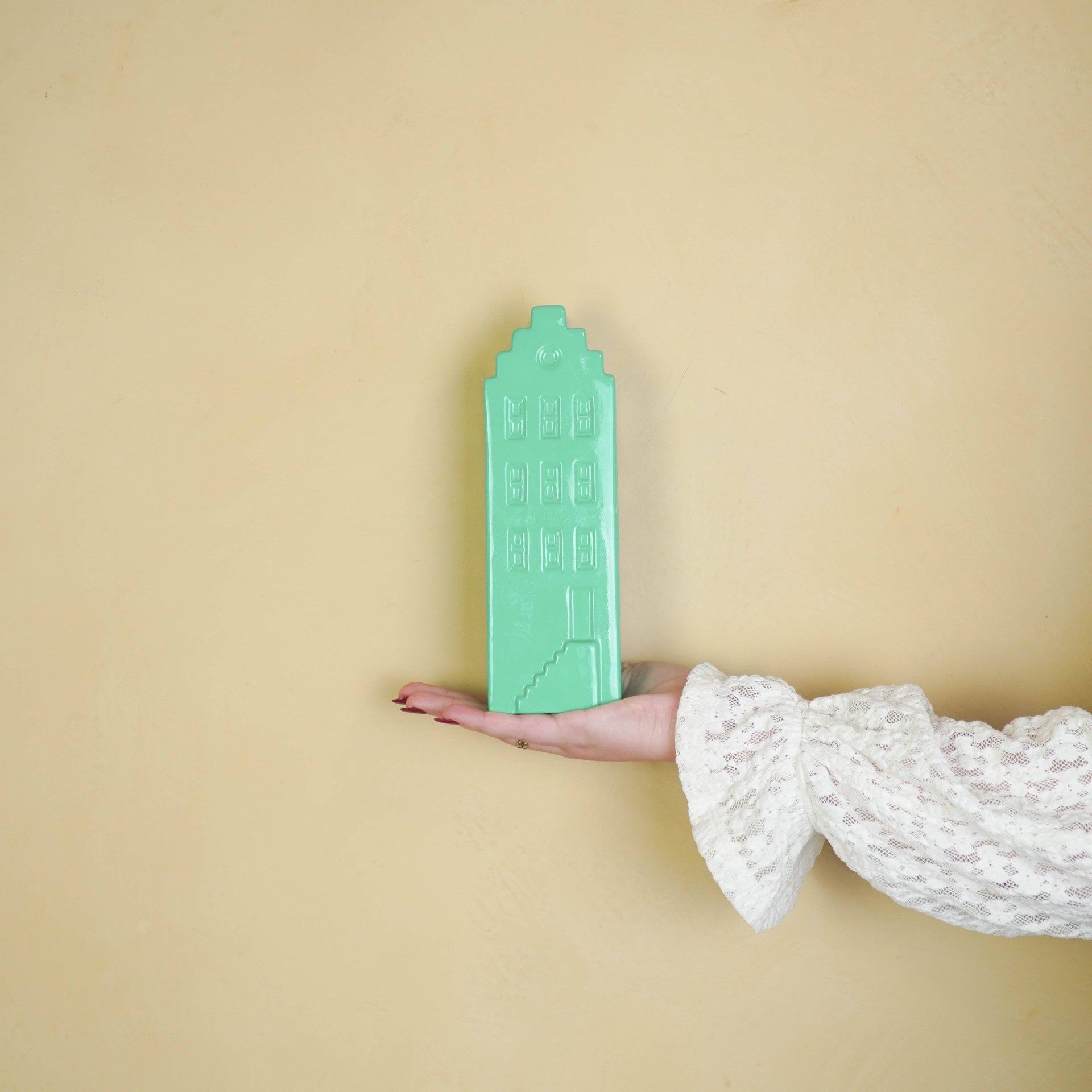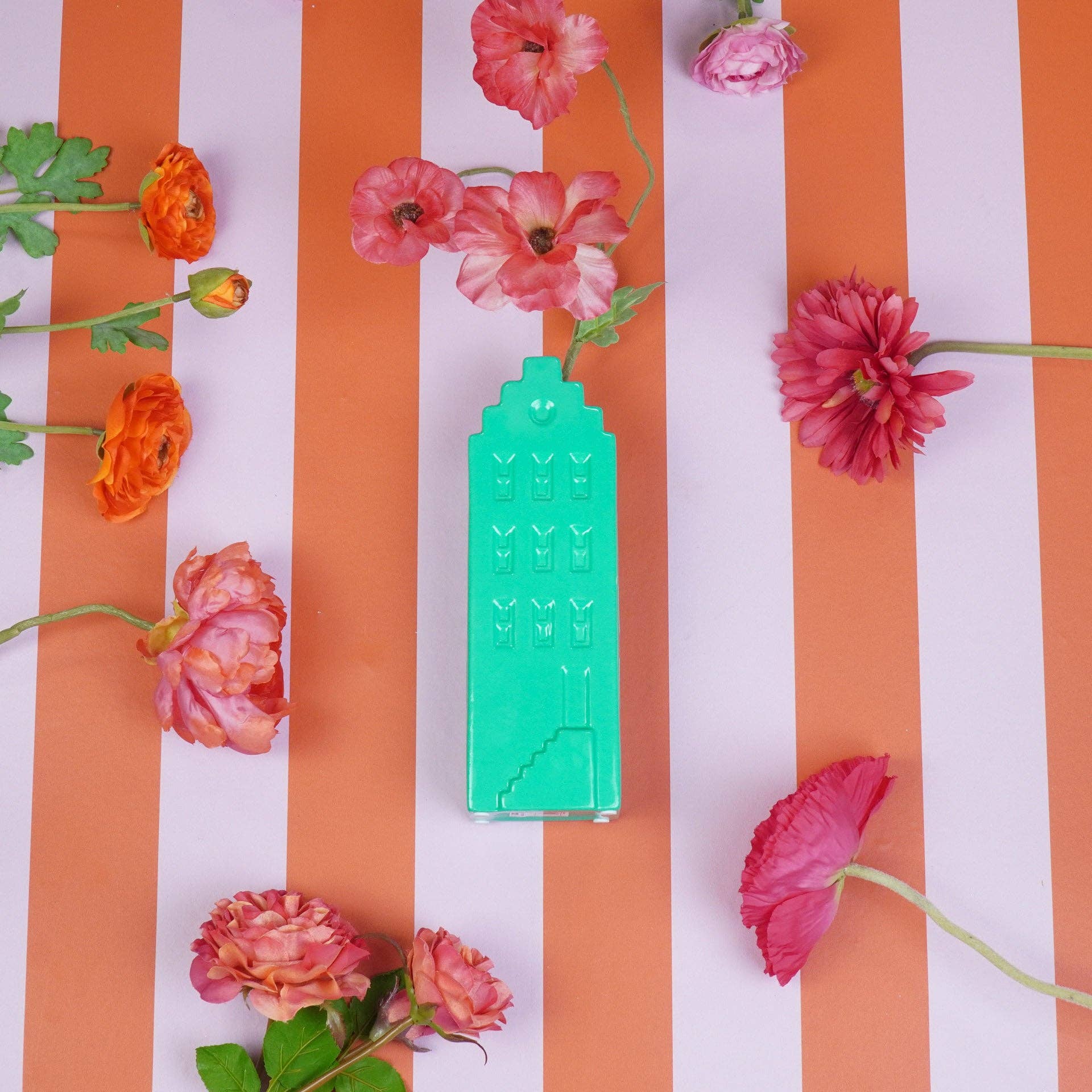 INTO THE HOME! Bring a piece of Amsterdam into your home with this ceramic vase shaped like a classic canal house! A miniature townhouse just for your flowers. With its charming facade, rich color, and playful details, this house-shaped vase is just as photogenic as the real canal houses.