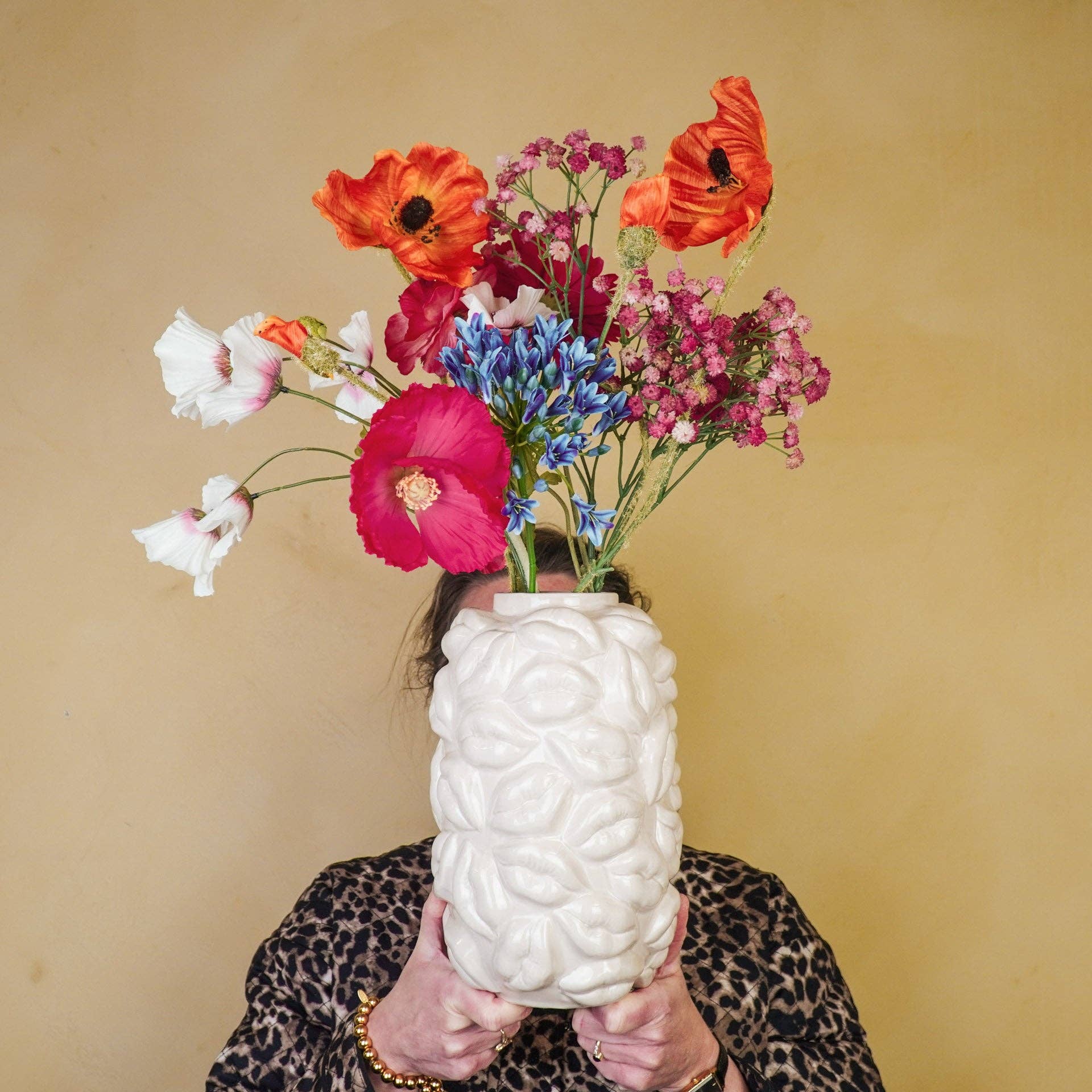 KISS ME - Looking for a uniquely designed flower vase that will make you happy every time you look at it? This designer vase from Housevitamin is exactly what any home needs! Lips pop out, and it looks like they're kissing you. It's your very own 'Kiss Me Vase'! It's made of colorful ceramic and is waterproof. Get this eye-catcher now!