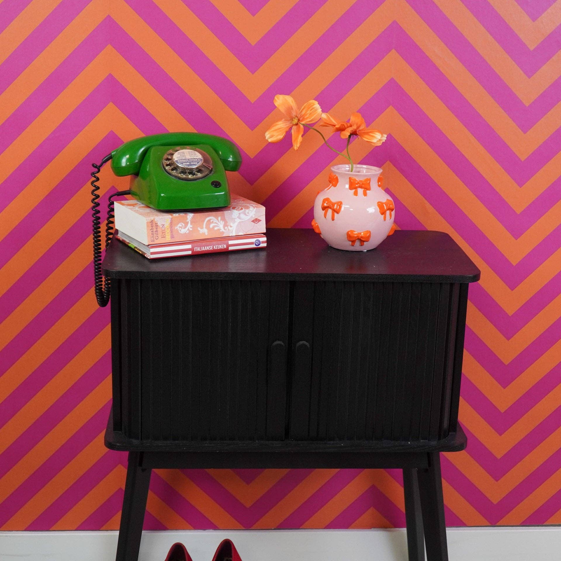 Vase - Flower Vase with Ribbons - Pink/Orange - 14.5x14.5x13cm