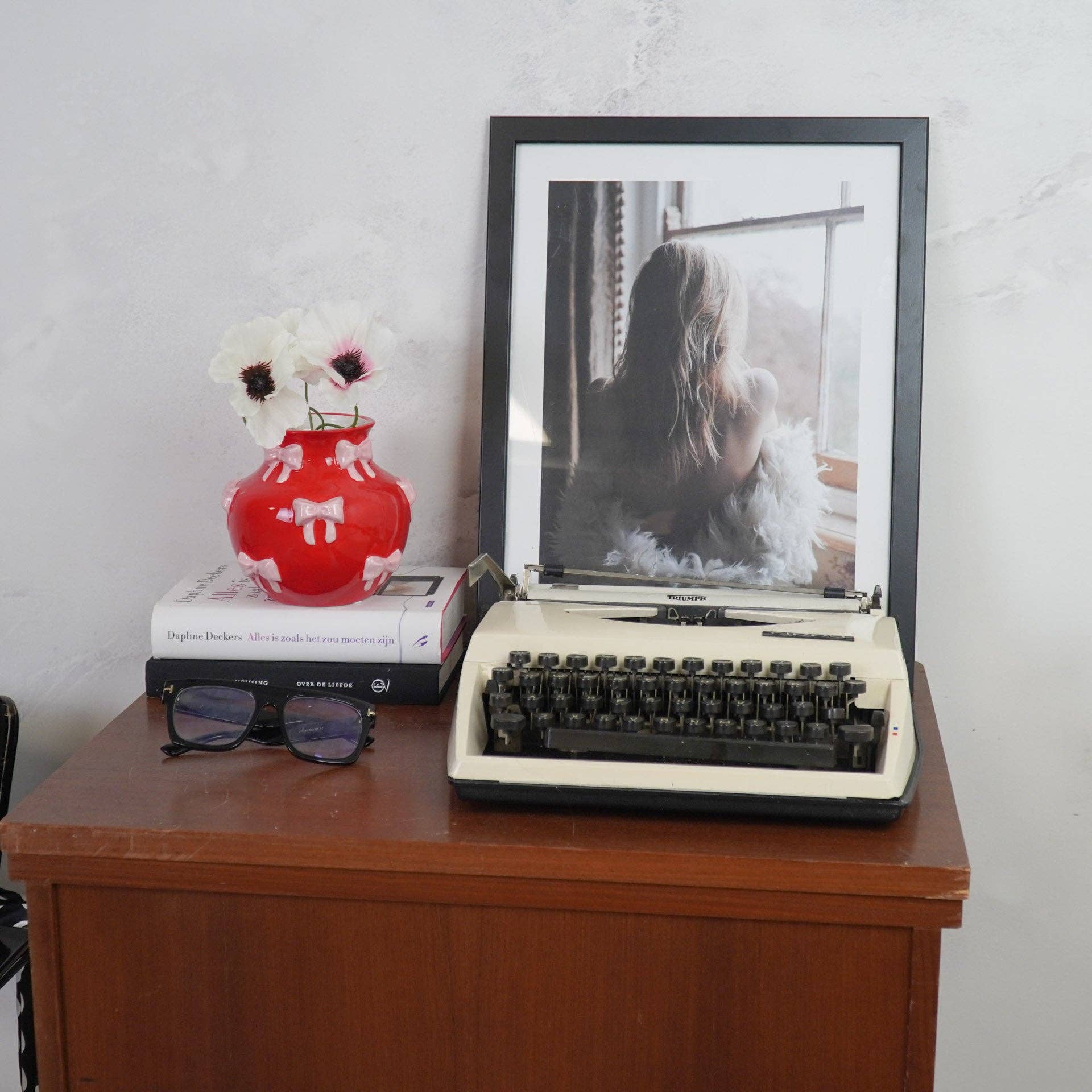 Vase - Ribbon Flower Vase - Red/Pink - 14.5x14.5x13cm