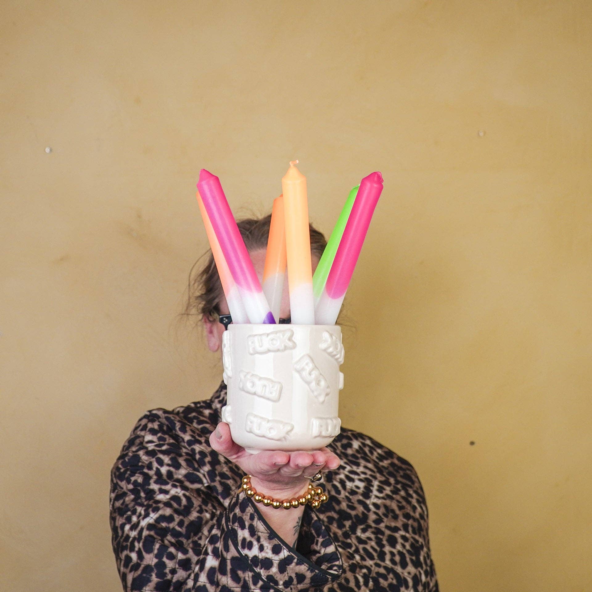 Pot - 'FUCK' - Céramique - Beige - 11x11x11,5cm