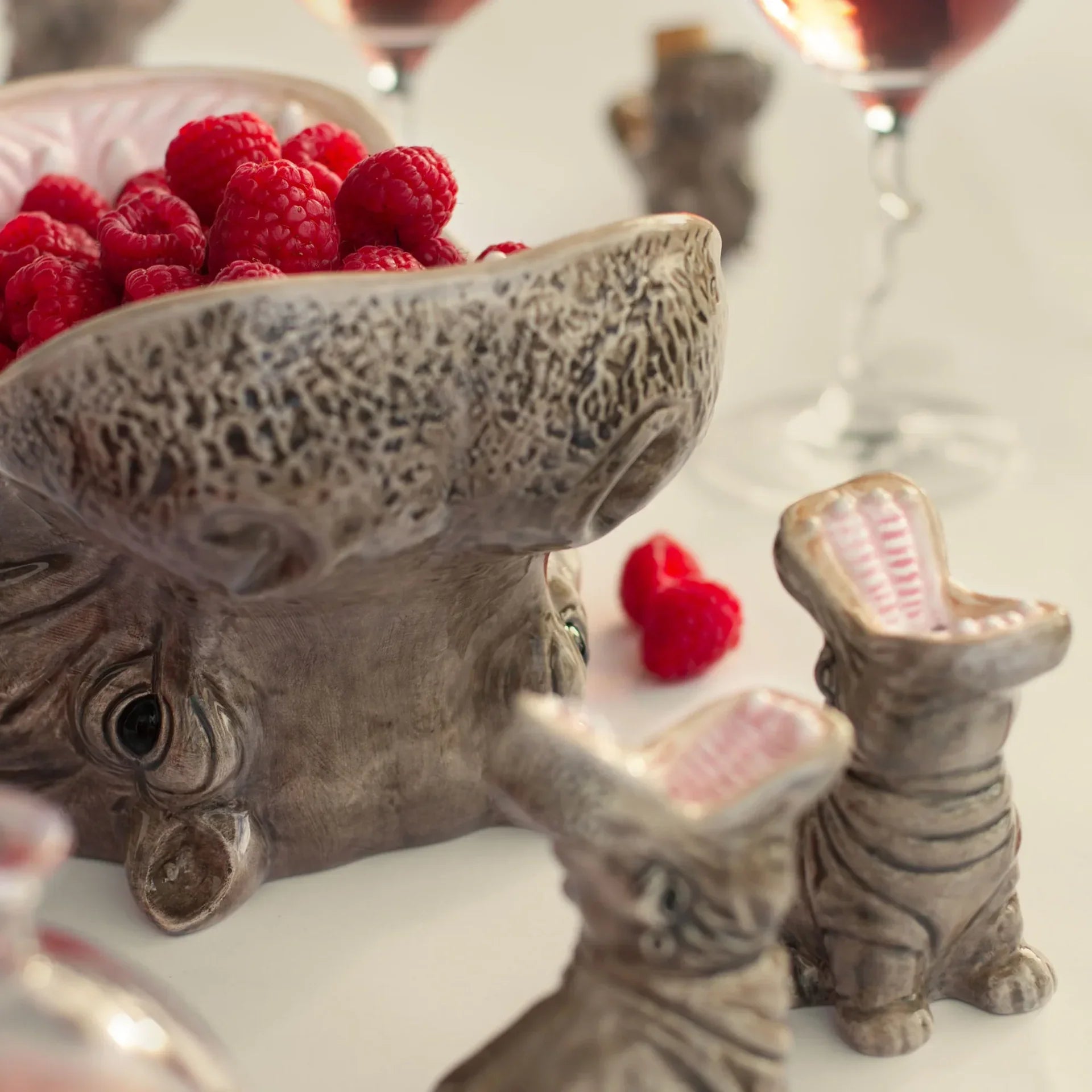 Il y a un nouveau membre de la famille en ville : le bol Hungry Hippos. Cet accroche-regard sauvage attend la bouche grande ouverte pour dévorer vos collations préférées et bien plus encore. Fidèle à son nom, cet hippopotame affamé offre de la place pour les fruits, les collations, les bijoux, les clés et autres petits accessoires. La forme détaillée et les couleurs chaudes font de ce bol en céramique un véritable accroche-regard et un sujet de conversation.
