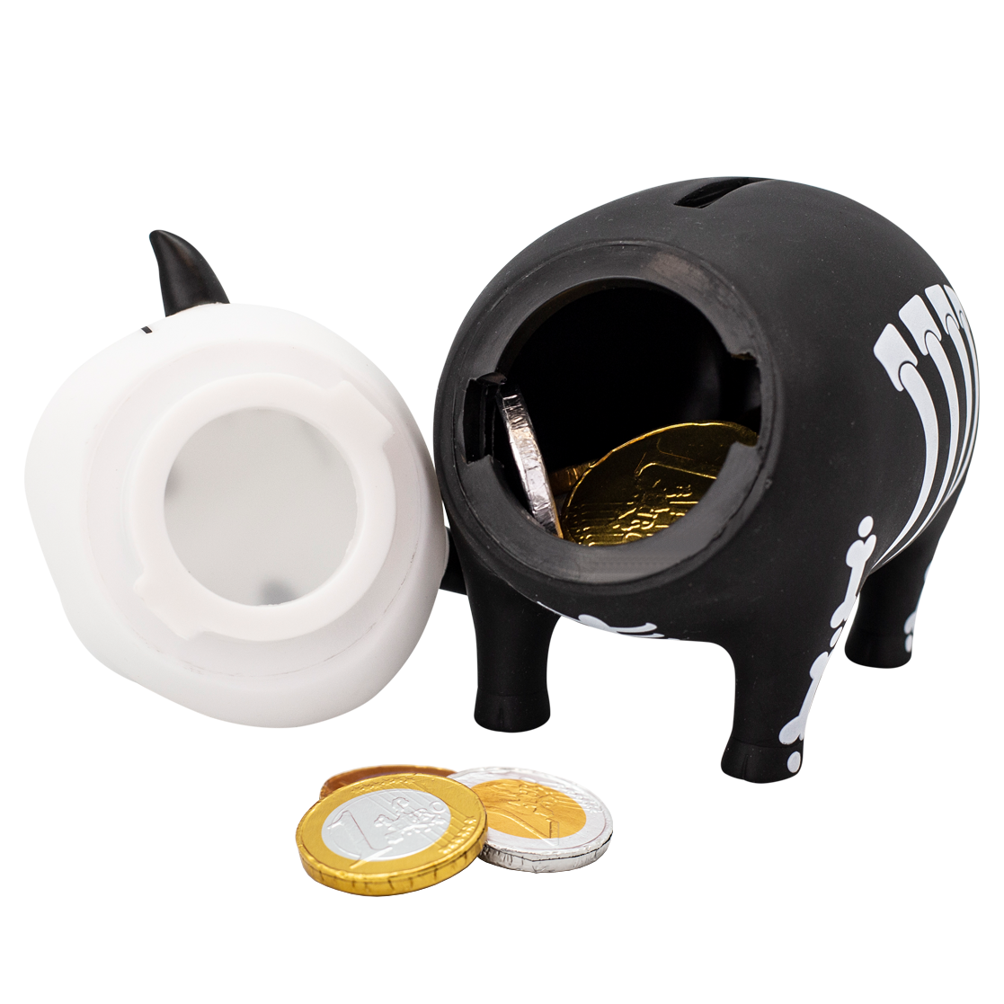 Avec ses os apparents, la tirelire cochon squelette est un Cochon effrayant qui garde en toute sécurité les pièces des horror fans. Parce qu'elle terrifie quiconque s'approche trop de ses trésors. Un nouveau costume d'Halloween, une visite de cinéma de film d'horreur ou une décoration de fête d'Halloween, ce cochon squelette est à vos côtés pour tous les projets effrayants.