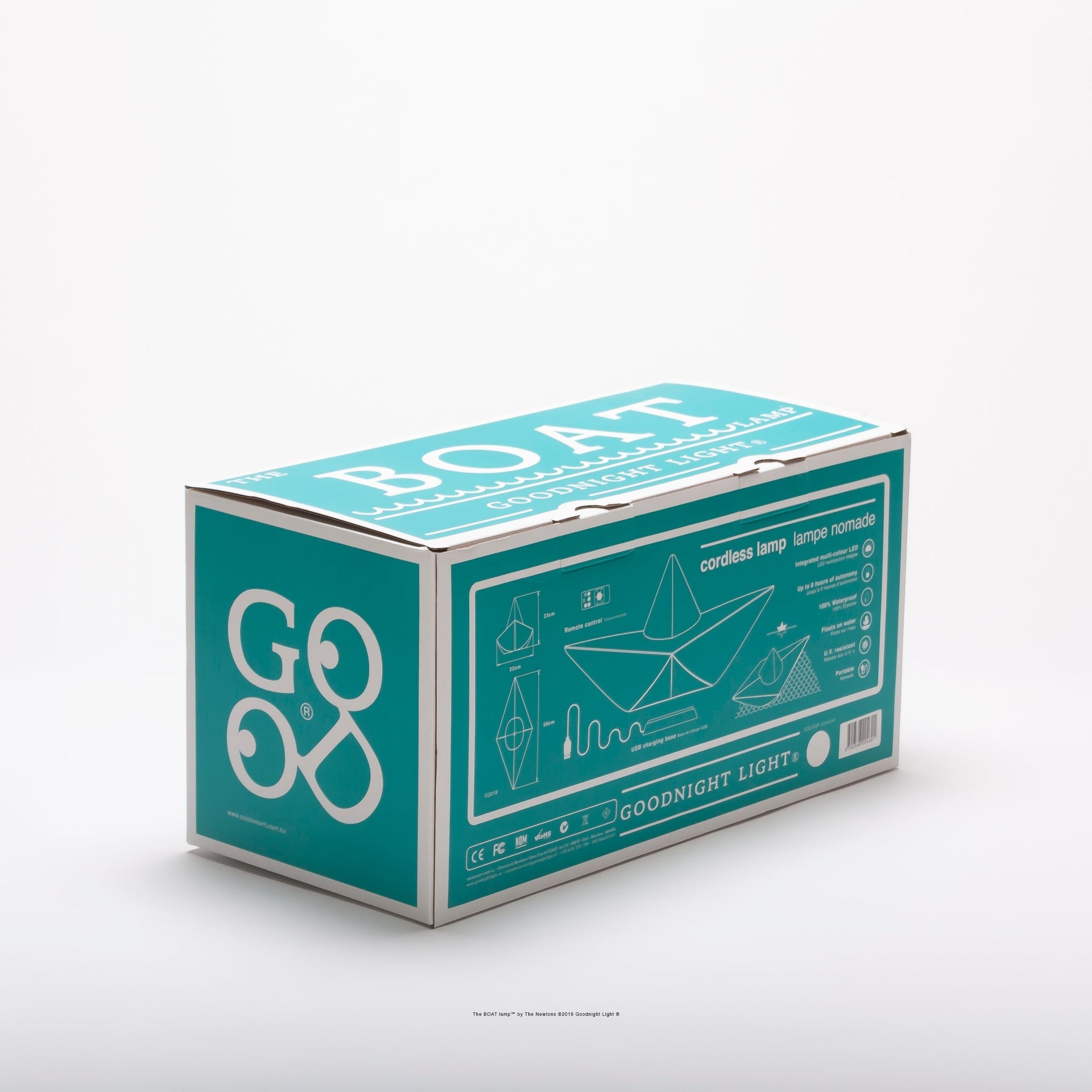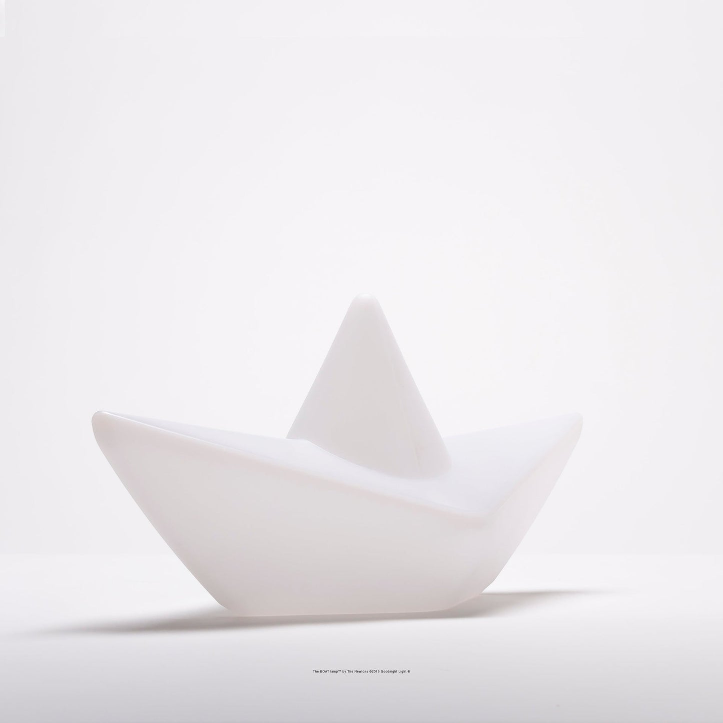 Boat Lamp ™ -laivasto vedessä ja se on suunniteltu siirrettäväksi - sen langaton ladattava akku mahdollistaa sen kuljettamisen induktiokuormitusasemalta mihin tahansa paikkaan. Integroidulla ruostumattomasta teräksestä valmistetulla vanteella useita yksiköitä tai seinäkiinnitystä varten tämä lyhty keksii kannettavan valon käsitteen muuttaen sen hauskan muotoilun elementtiin.