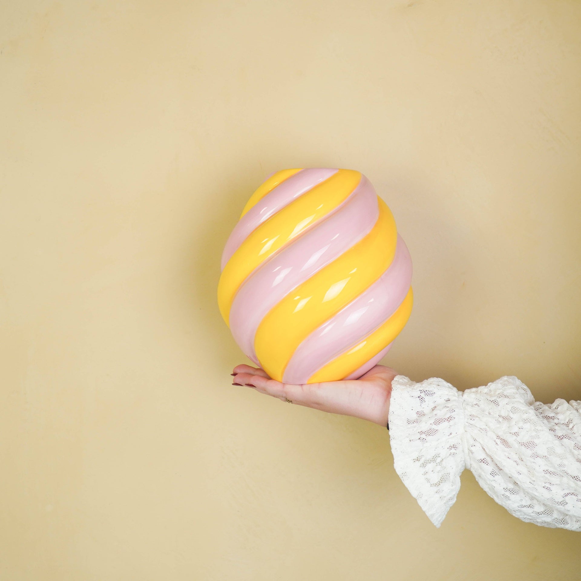 Vase à fleurs - Vase tourbillon - Céramique - Jaune/Rose clair - 20x20x21,5 cm