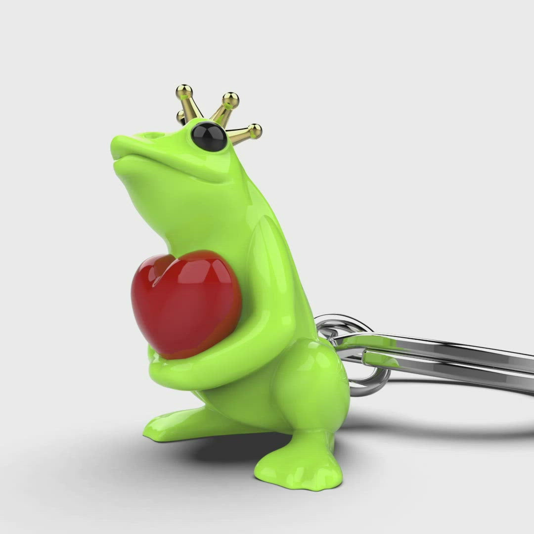 rana verde con cuore rosso e corona dorata