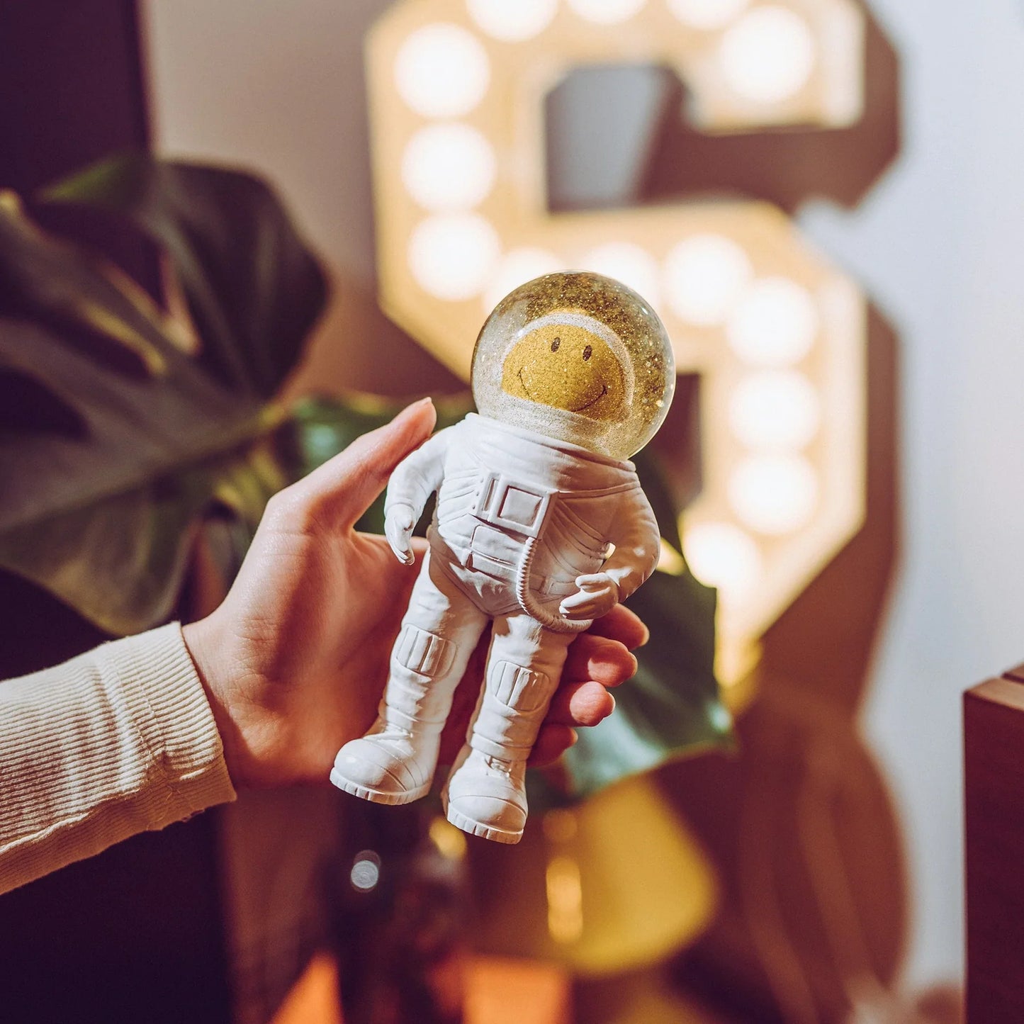 Explorant le royaume de la joie, l'Astronaute est chargé d'une mission importante : vous faire sourire ! Quelle que soit la difficulté de votre journée, le Smiley Summerglobe vous permettra de relever tous les défis avec le sourire aux lèvres. Un accroche-regard dans chaque pièce et certainement la pièce de décoration la plus étonnante pour tout admirateur de voyages spatiaux ! Secouez un peu l'astronaute - les flocons de neige dorés dansant autour du visage souriant vous remonteront le moral à coup sûr.