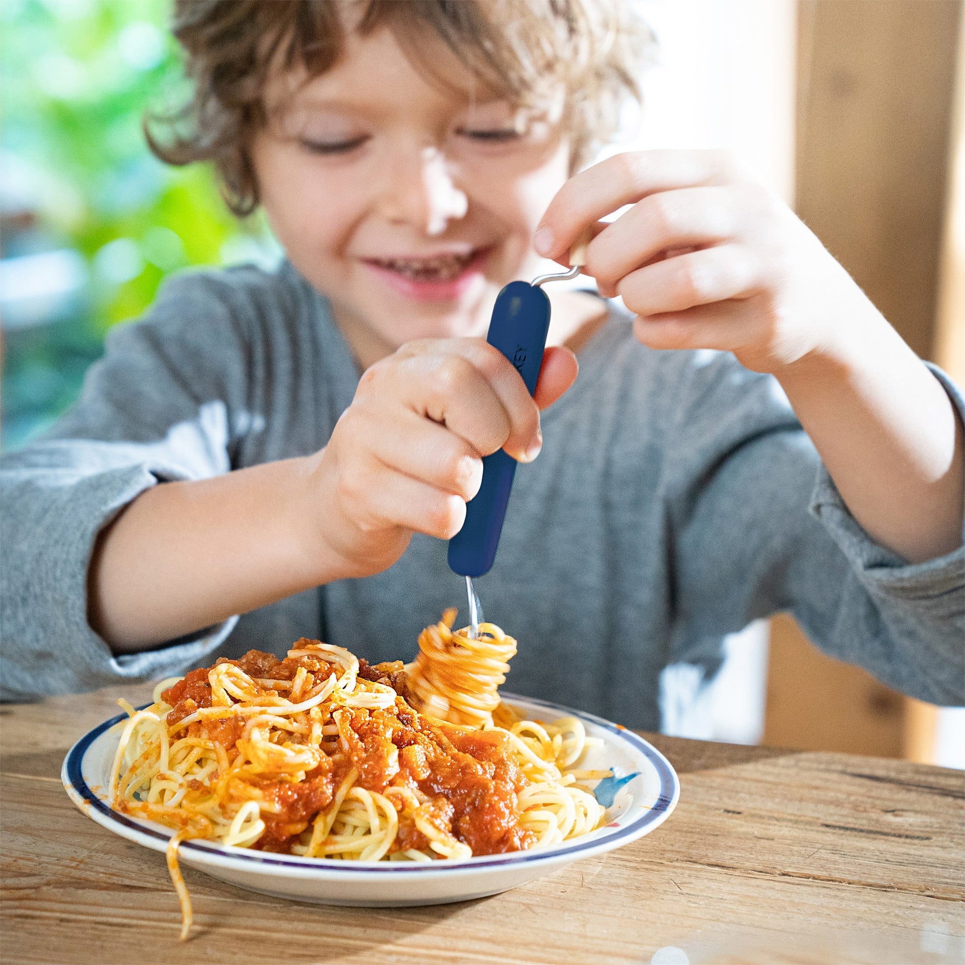 un tour de leurs pâtes. Avec notre fourchette à spaghetti high-tech, nous renversons la vapeur. À l'aide de la manivelle, ils peuvent facilement les remonter maintenant.