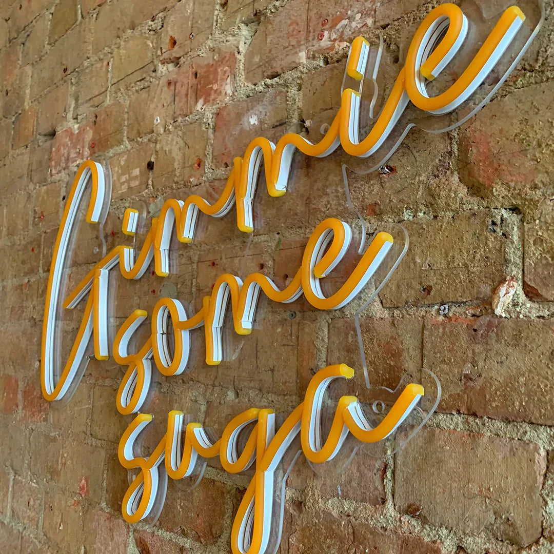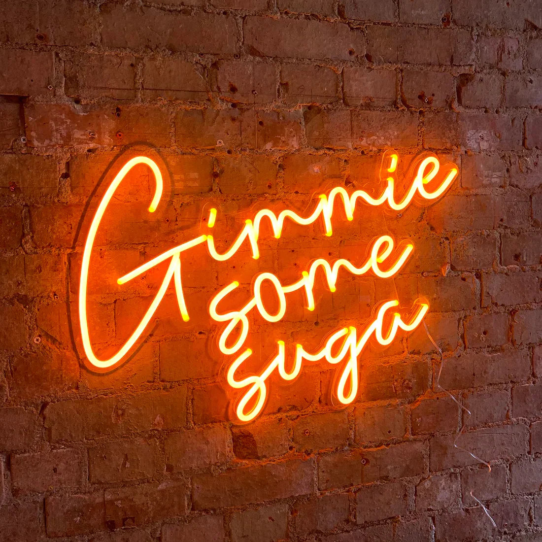 Nous avons tous besoin d'amour, alors donnez-moi du Suga ! Notre nouvelle enseigne LED néon est disponible dans un superbe orange pour réchauffer n'importe quelle pièce.