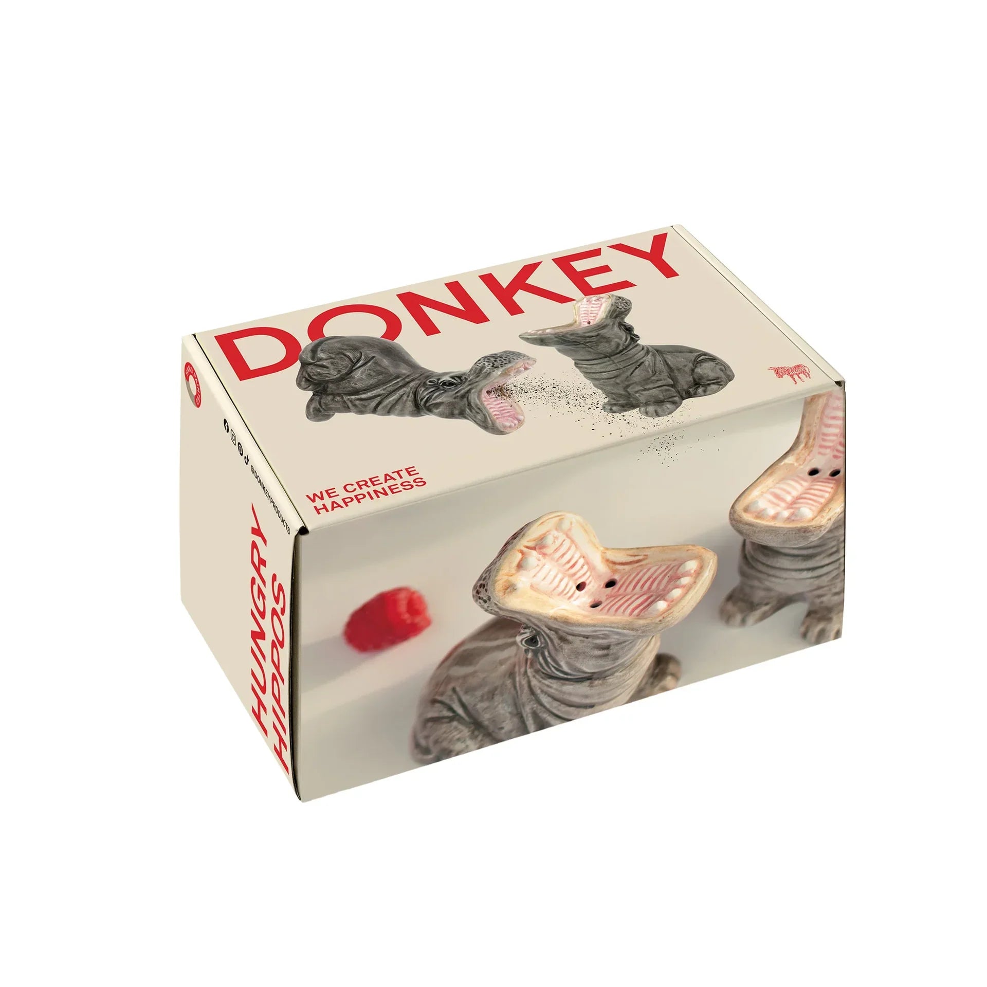 Les nouvelles salières et poivrières de notre collection Hungry Hippos apportent de la variété et du piquant à la table. Puisque les hippopotames sont connus pour être des animaux de troupeau, ces hippopotames se présentent sous la forme d’une jolie paire, chacune composée d’une salière et d’une poivrière. Les animaux en céramique peints à la main volent sans effort la vedette, même lors du dîner le plus élégant.
