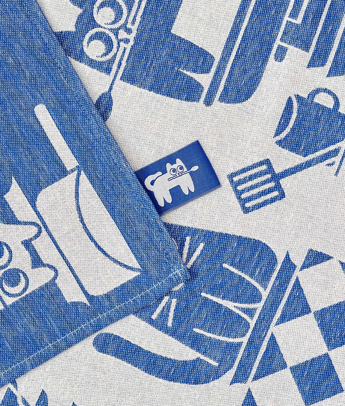 Amusant et humoristique, ce design de torchon par Elliot Kruszynski est proposé dans un coloris classique bleu et blanc. Fabriqué en 100 % coton tissé, le torchon présente une collection de chats déterminés à être utiles dans la cuisine.