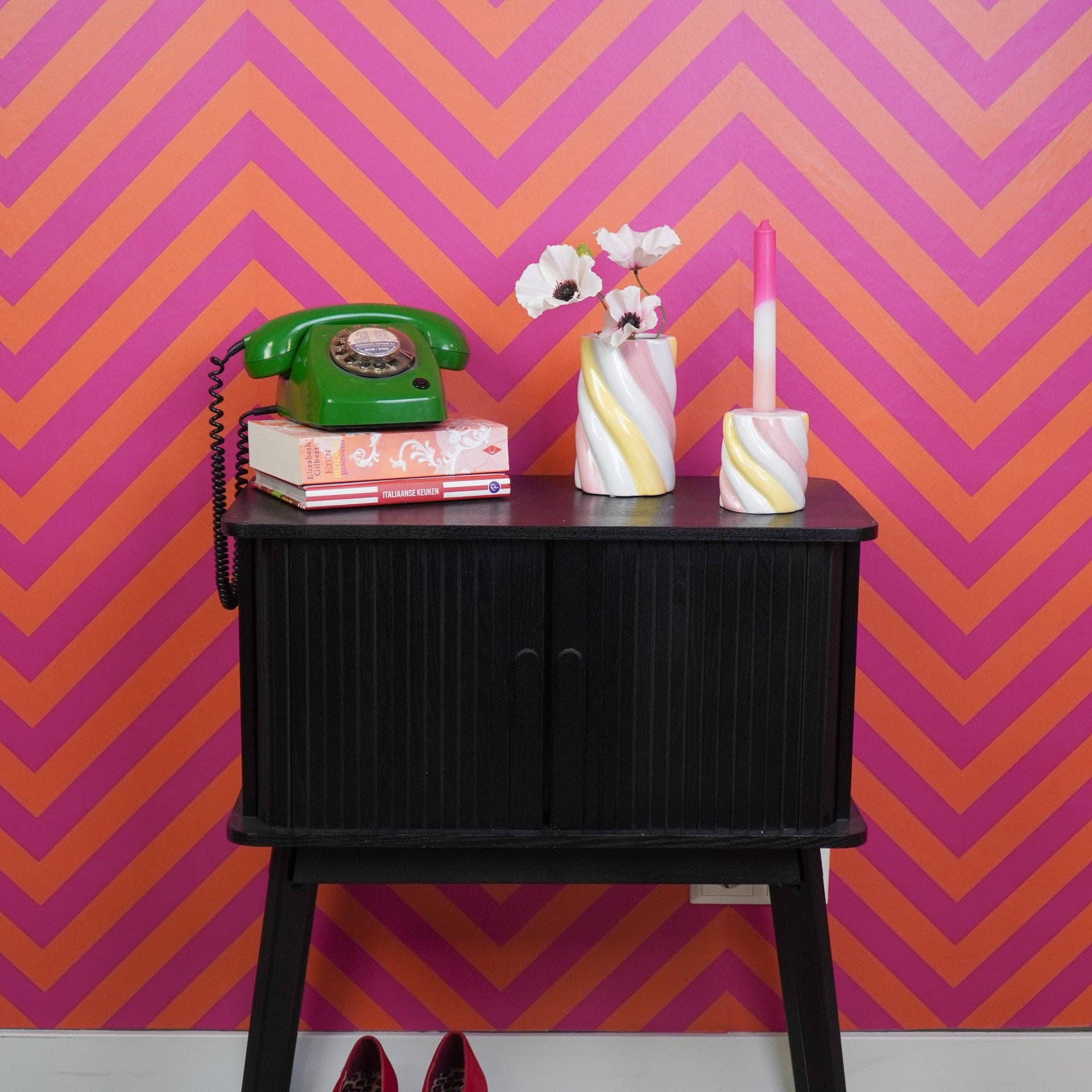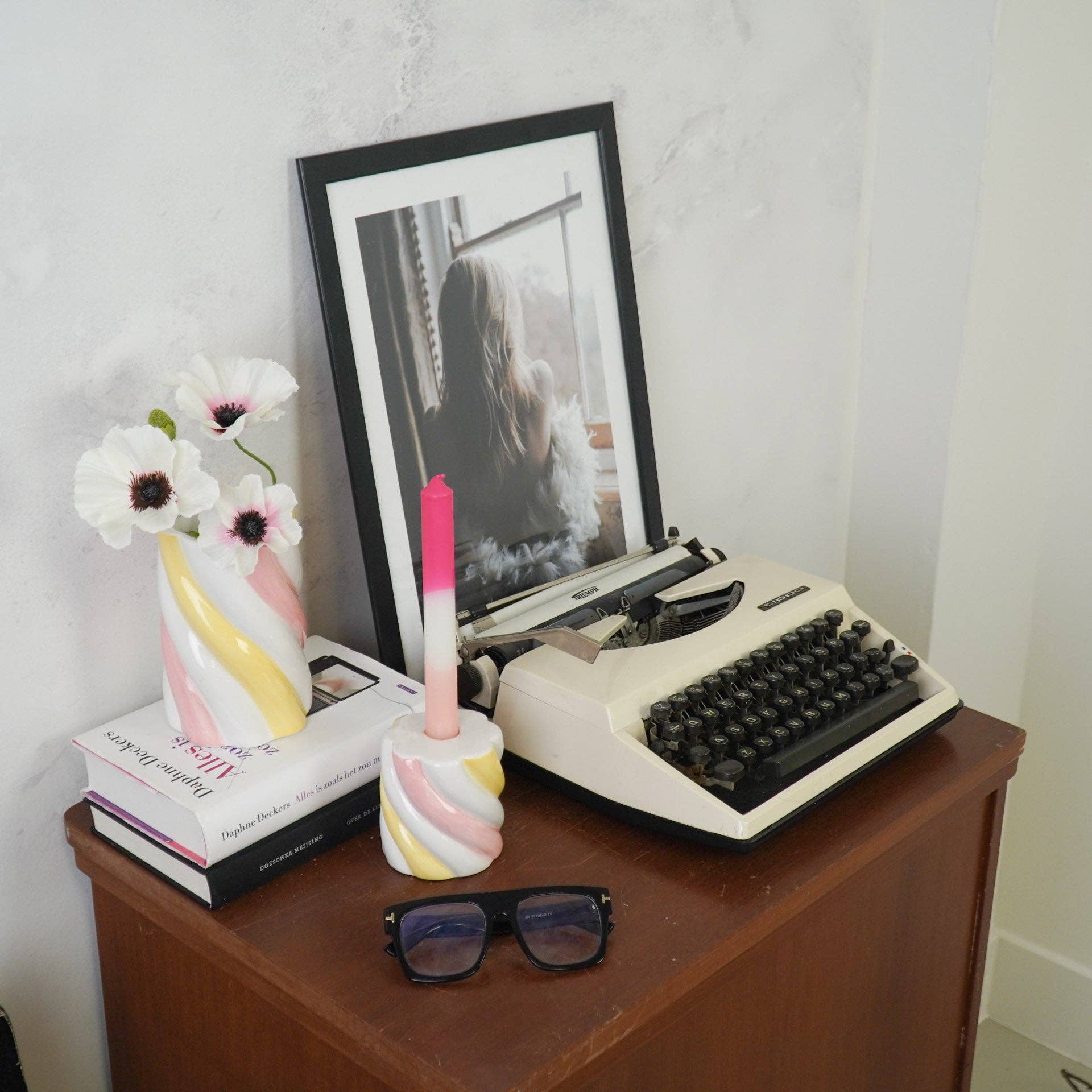 Conseil de style : Rendez-le encore plus joyeux en remplissant le vase de fleurs aux couleurs pastel, comme des pivoine